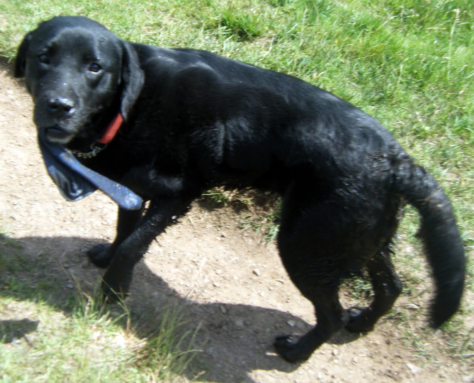 Meg always finds something to carry, and today it was a sock. I love waiting to see what it is she finds!