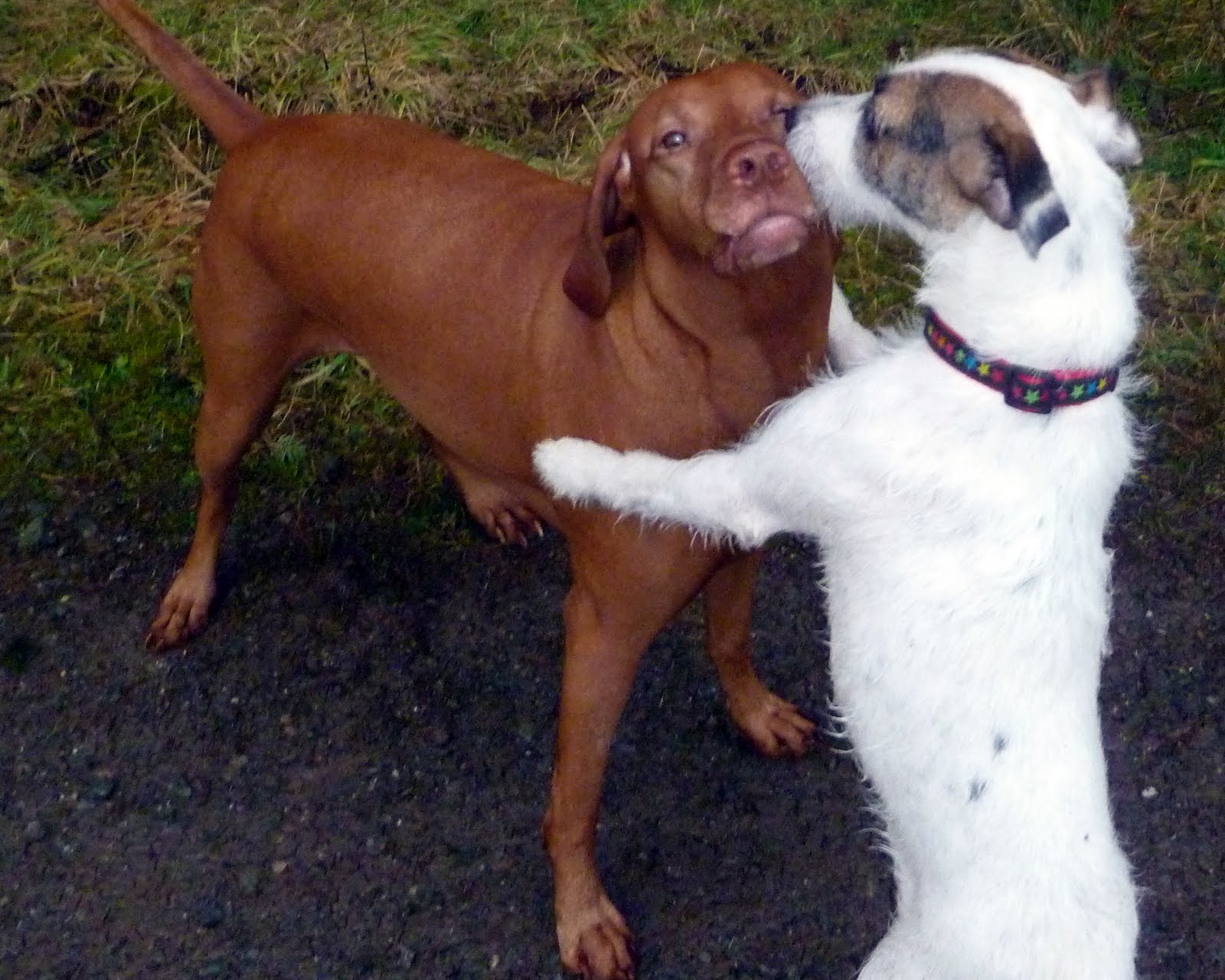 In this photo are my dog Holly and Max (a Parsons Jack Russell).